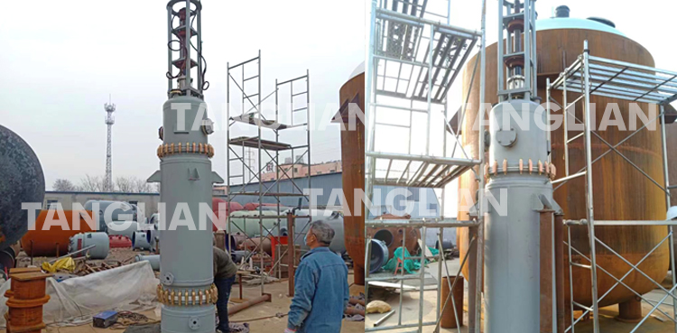 2、分离筒:物料由设在分离筒身下端的入口切向进入蒸发器,并经安装在分离筒身内的布料器被连续均匀地分布于蒸发筒身内壁,从蒸发筒身蒸发出的二次蒸汽上升至分离筒,经安装在内的气液分离器,将二次蒸汽可能挟带的液滴或泡沫分离,二次蒸汽从上端的出口引出蒸发器。